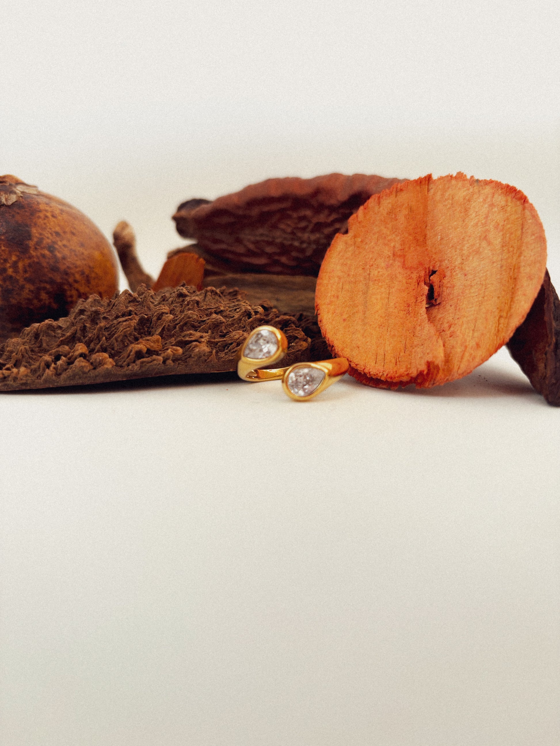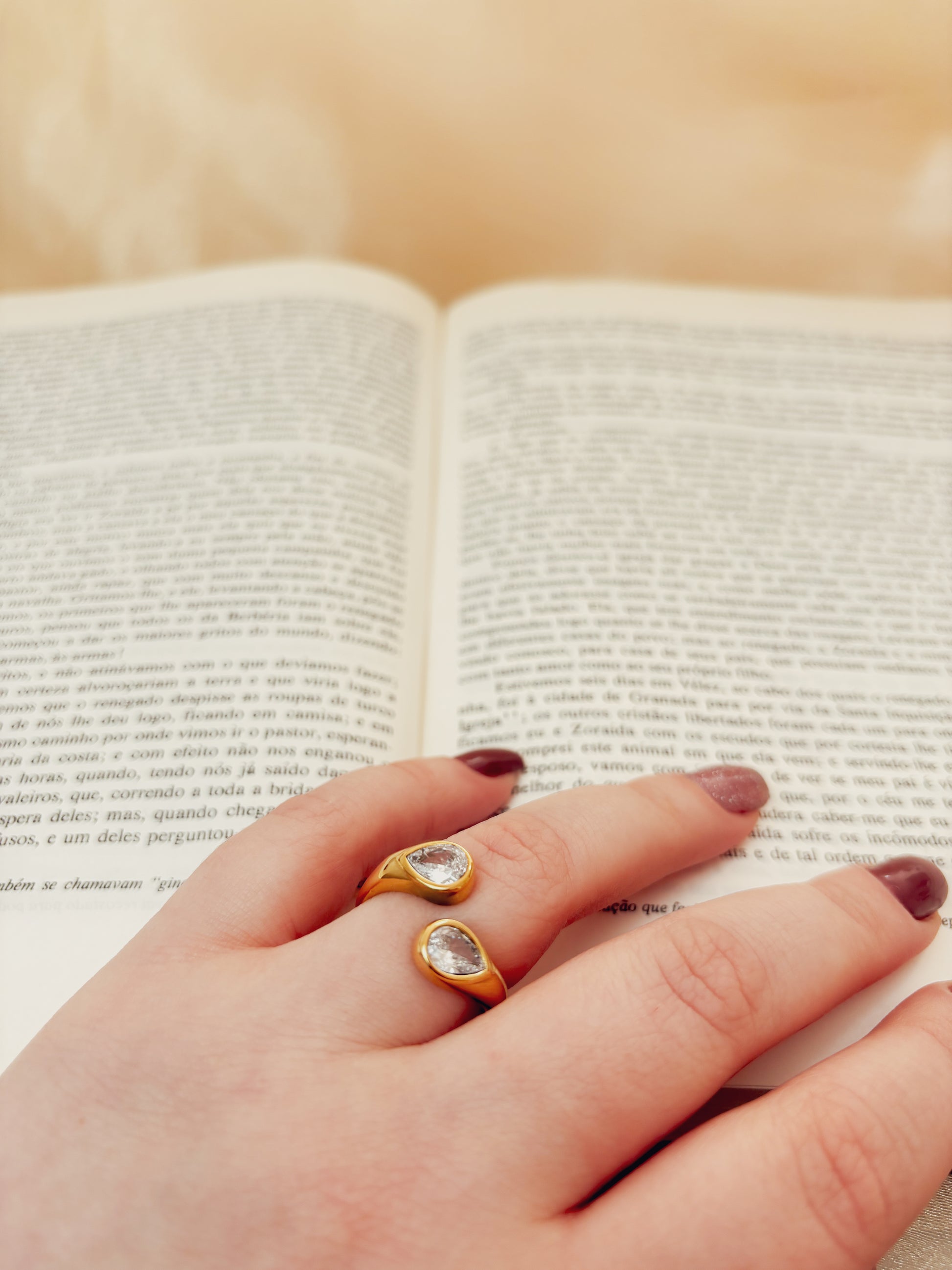 O Anel Vetrae é um símbolo de elegância e modernidade. Seu design aberto e delicado valoriza as pedras de brilho intenso, que refletem a luz de forma única. Banhado a Ouro 18K e com acabamento de alto padrão, é uma peça que combina sofisticação e conforto, ideal para quem busca uma joia versátil e atemporal.