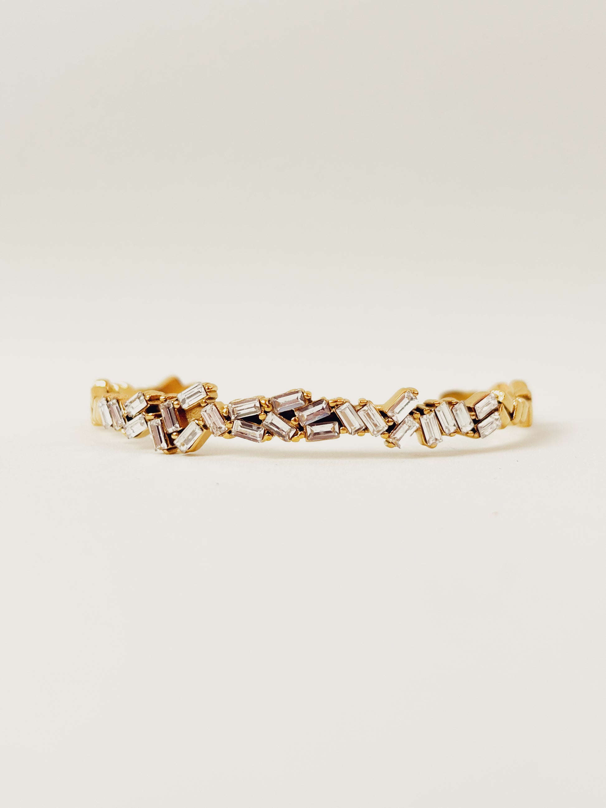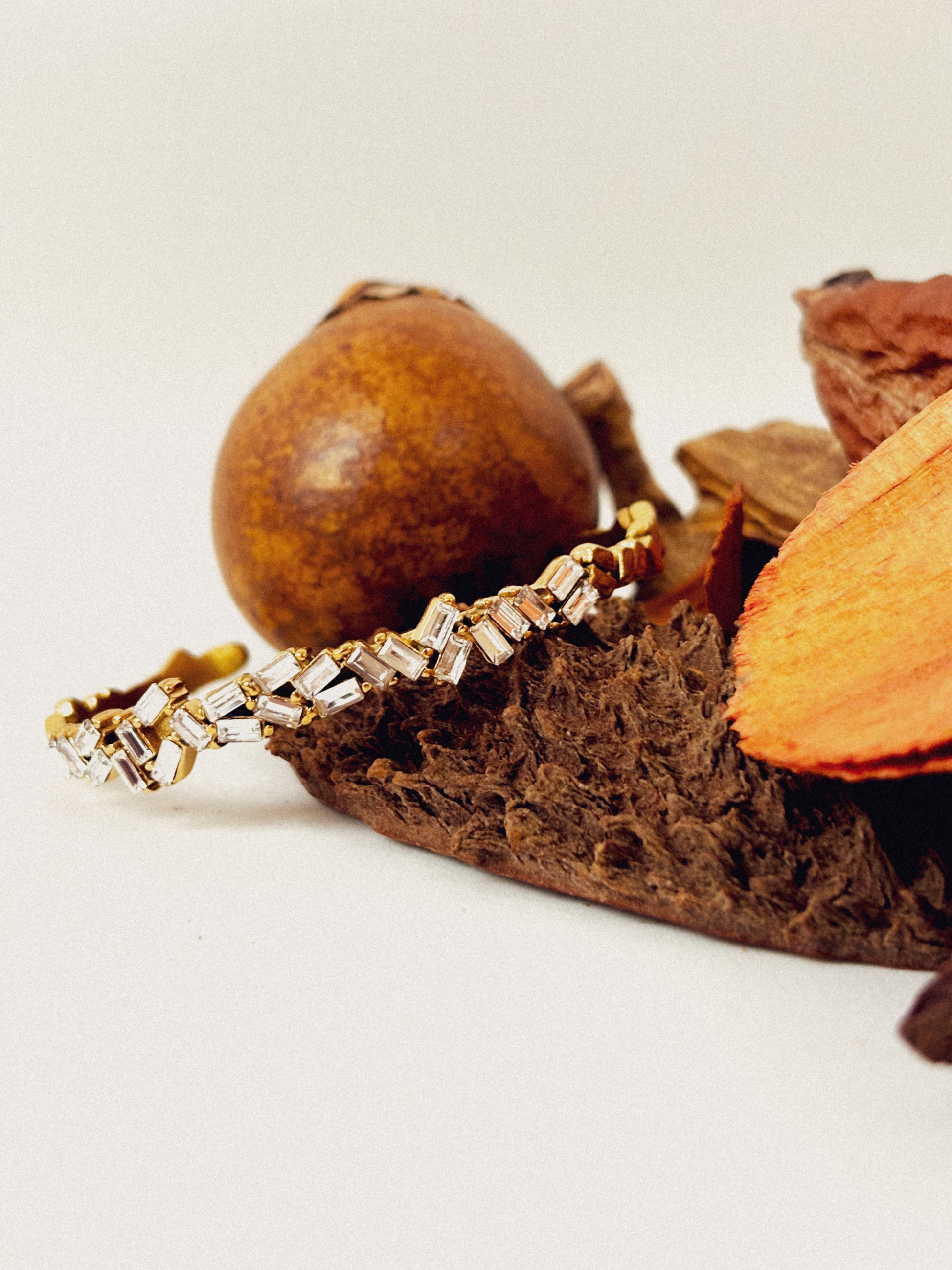 O Bracelete Eryndor é uma peça marcante e sofisticada, com design entrelaçado que reflete brilho e movimento em cada detalhe. Seu acabamento banhado a ouro 18K proporciona um toque de luxo e exclusividade, ideal para complementar produções elegantes e atemporais.