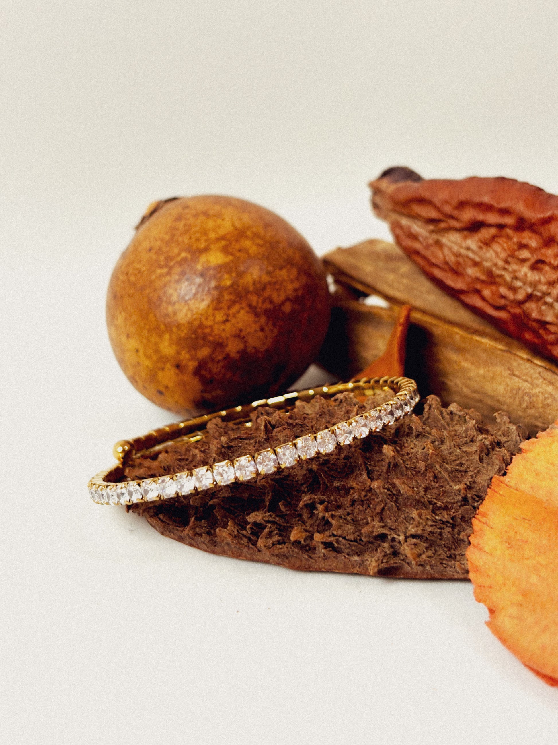 O Bracelete Ovelyne é sinônimo de sofisticação atemporal. Com cravação de pedras cintilantes, seu brilho delicado reflete elegância em cada movimento. Ideal para ser usado sozinho ou em composição com outros braceletes, ele é a peça perfeita para elevar qualquer look.