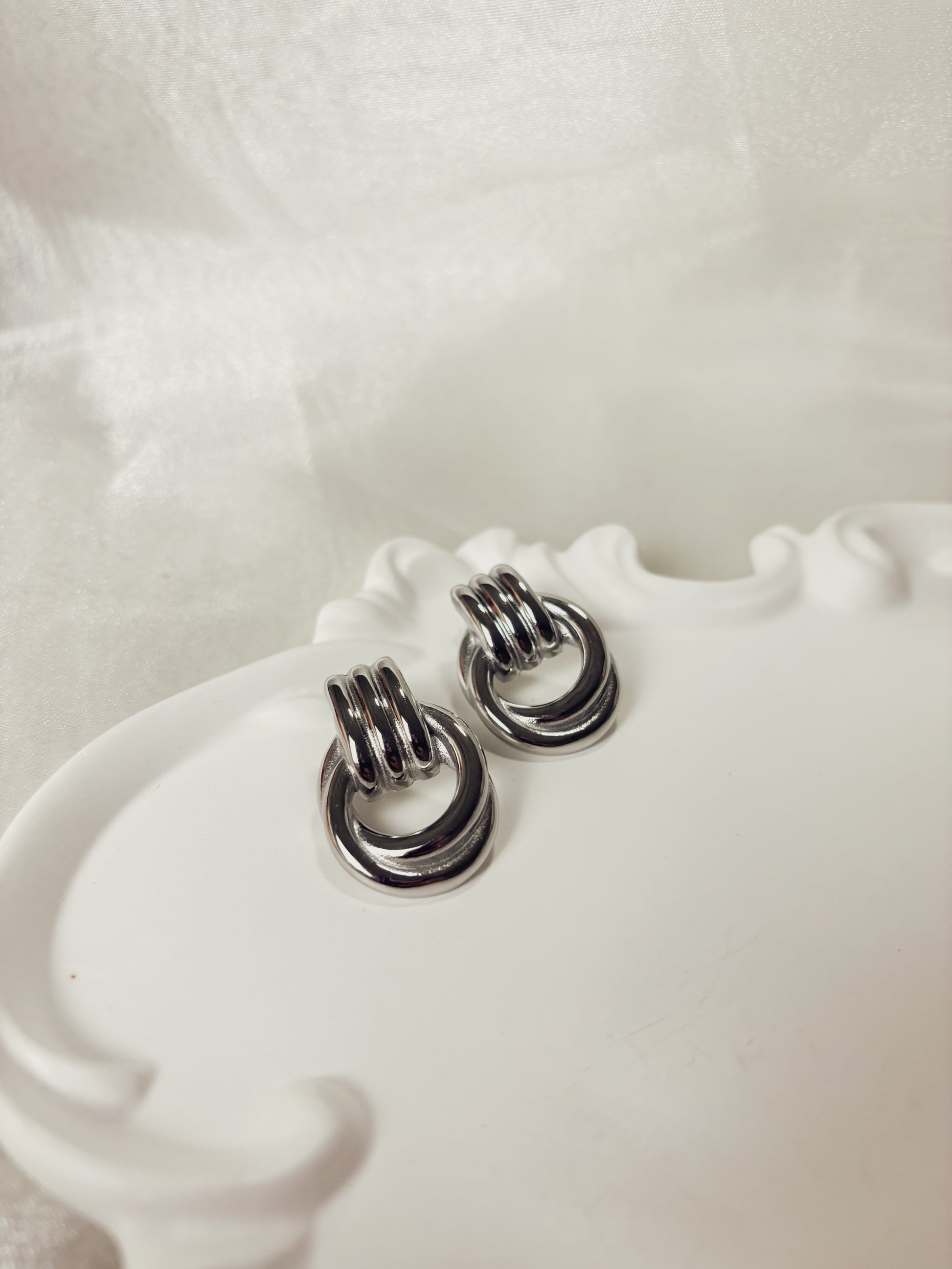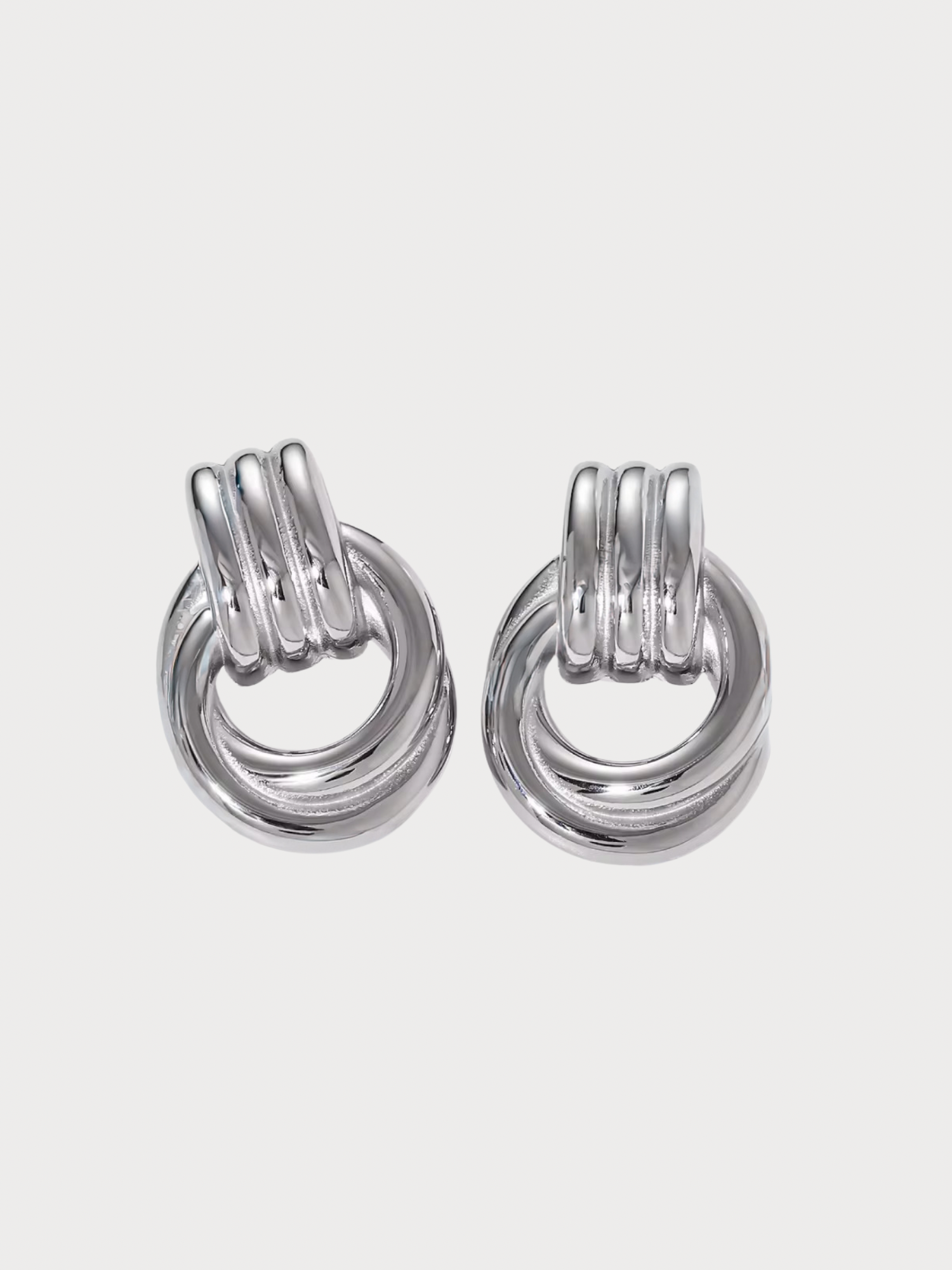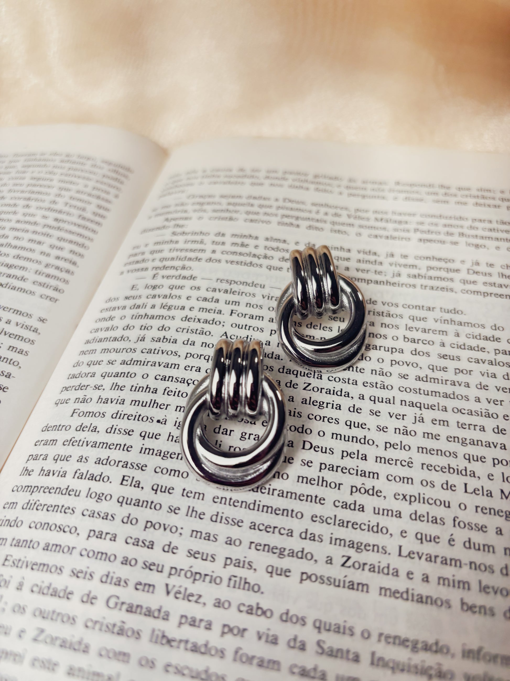 Brinco Astrion — moderno e versátil, o modelo em prata destaca-se pelas argolas entrelaçadas que simbolizam movimento e harmonia. Seu design robusto, porém minimalista, combina facilmente com produções elegantes ou casuais, trazendo um toque de sofisticação atemporal.