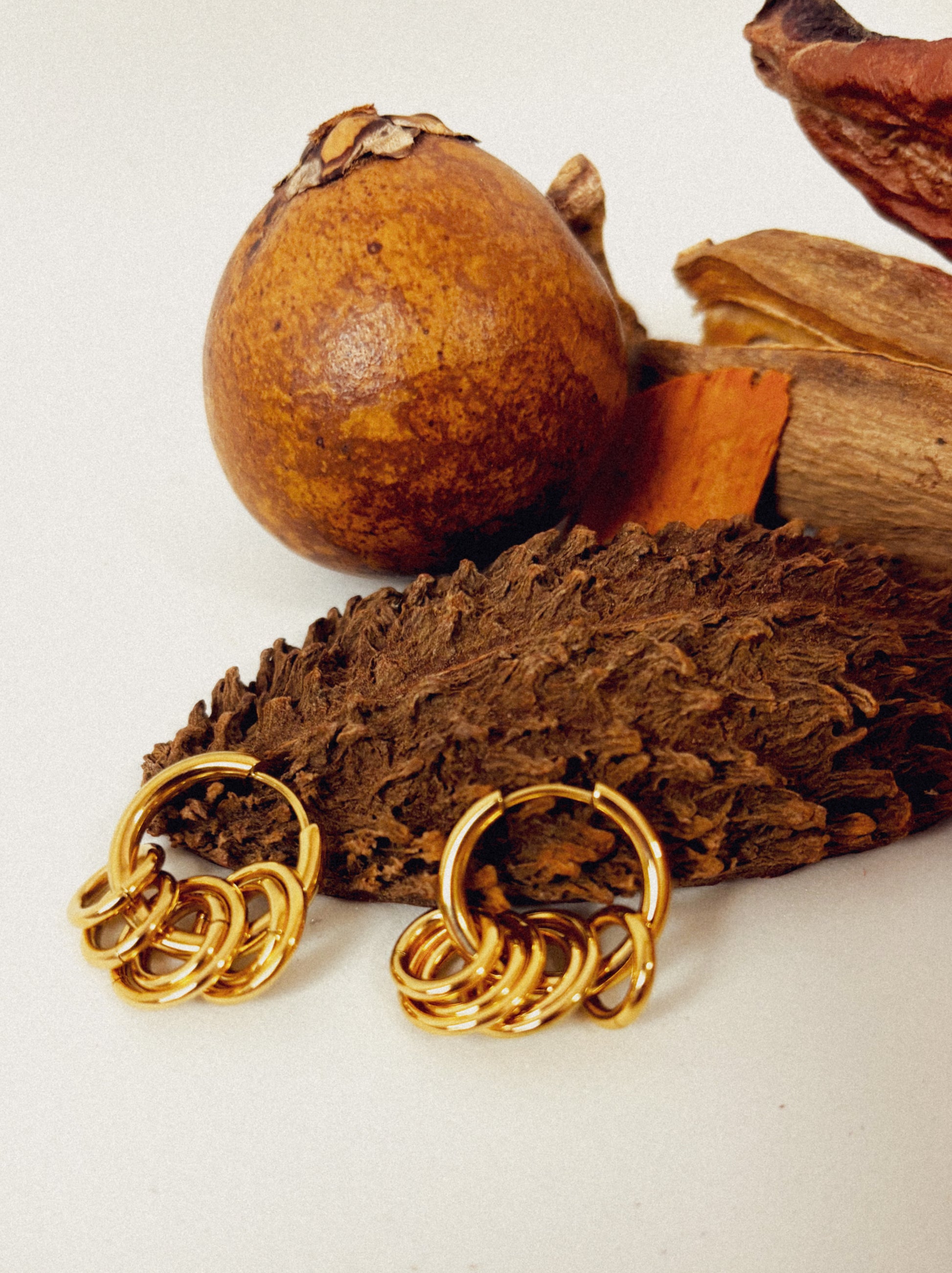 Brinco Elyssor — um clássico repaginado. Com design de argolas entrelaçadas e acabamento polido em ouro 18K, o modelo traz volume e brilho na medida certa, ideal para quem busca uma joia marcante, elegante e versátil. Seu formato sofisticado valoriza qualquer produção, do look casual ao mais refinado.