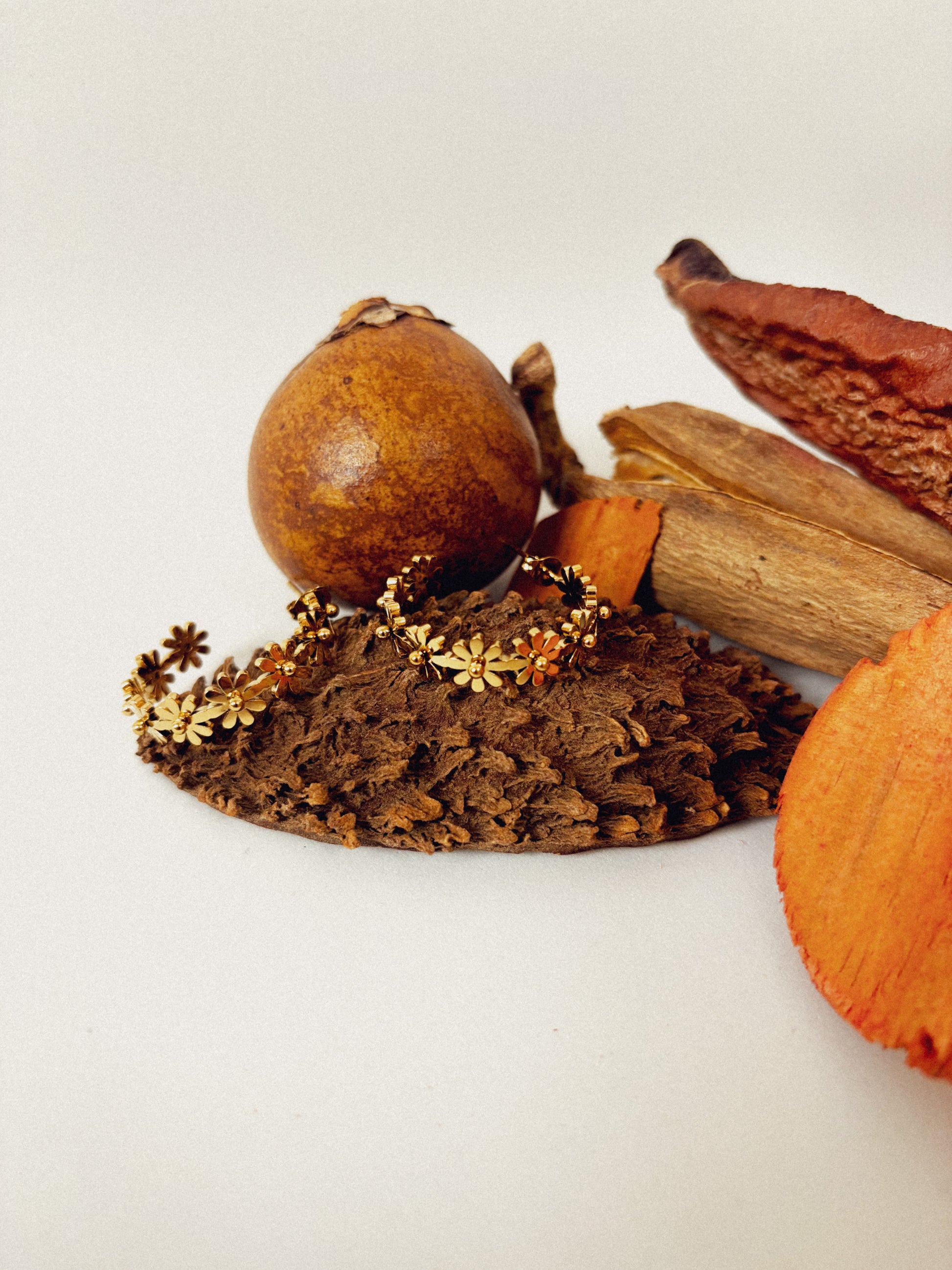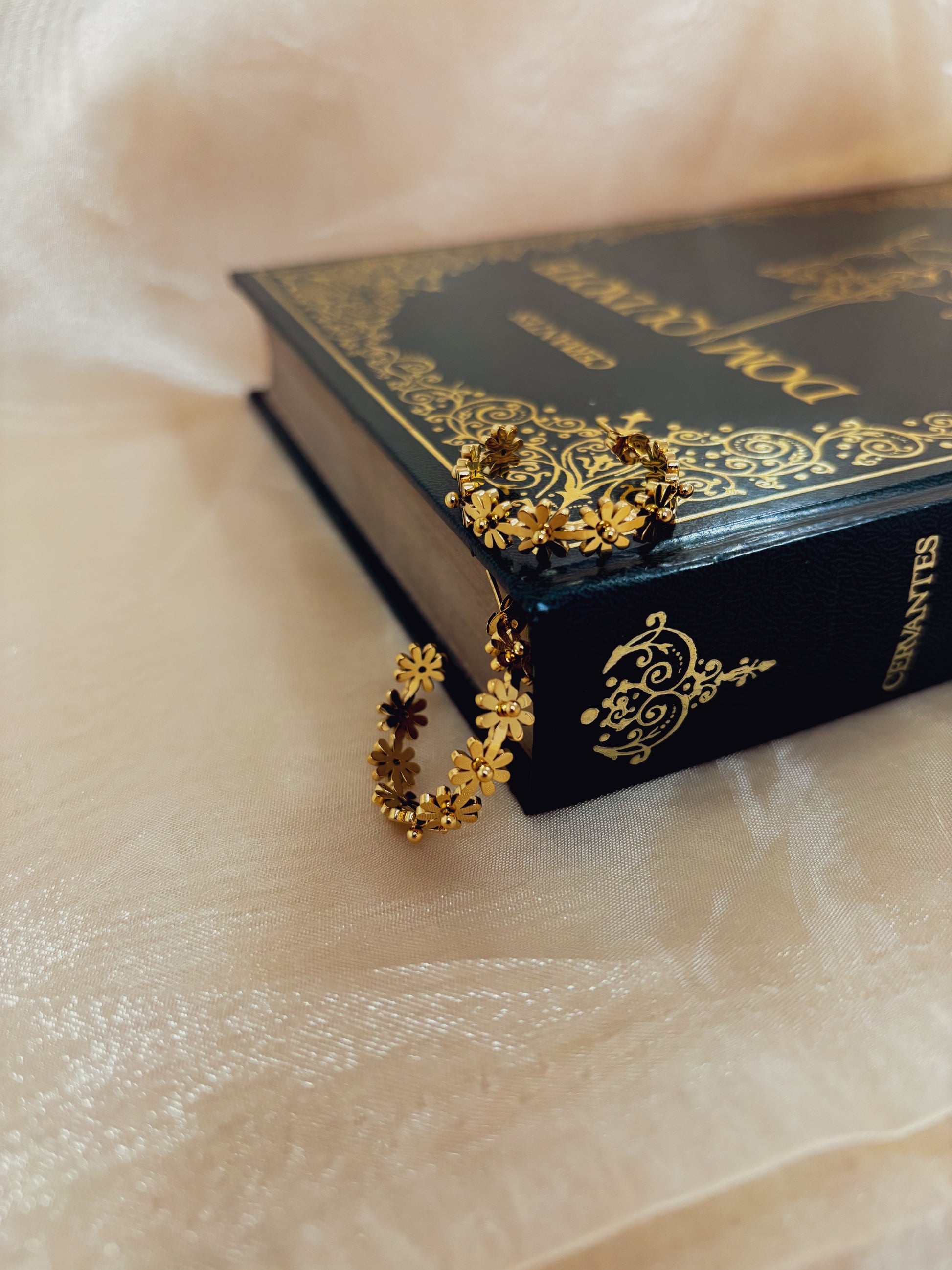 Delicado e cheio de charme, o brinco Myrrion traz um design floral que reflete leveza e feminilidade. Seu brilho dourado e formato harmonioso destacam o rosto com sutileza, tornando-o ideal para compor desde looks casuais até produções mais sofisticadas.