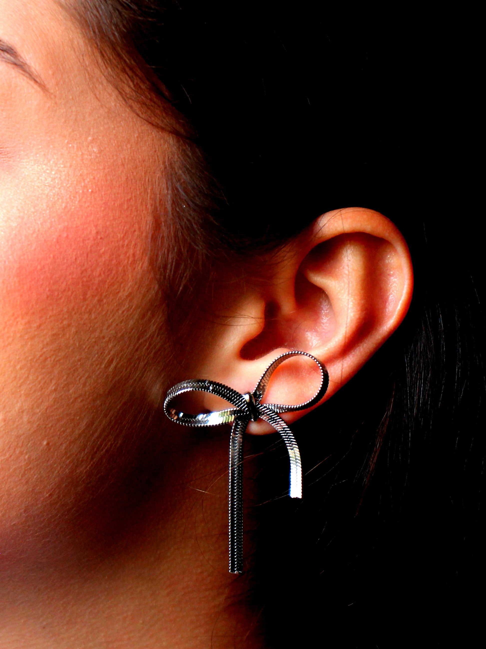 Brinco Kaelith — elegante e delicado, este modelo em formato de laço traduz feminilidade e leveza em cada detalhe. Seu design atemporal, aliado ao brilho sutil da prata, torna a peça perfeita para quem busca um toque romântico e sofisticado no dia a dia. Ideal para compor desde produções casuais até looks mais refinados.