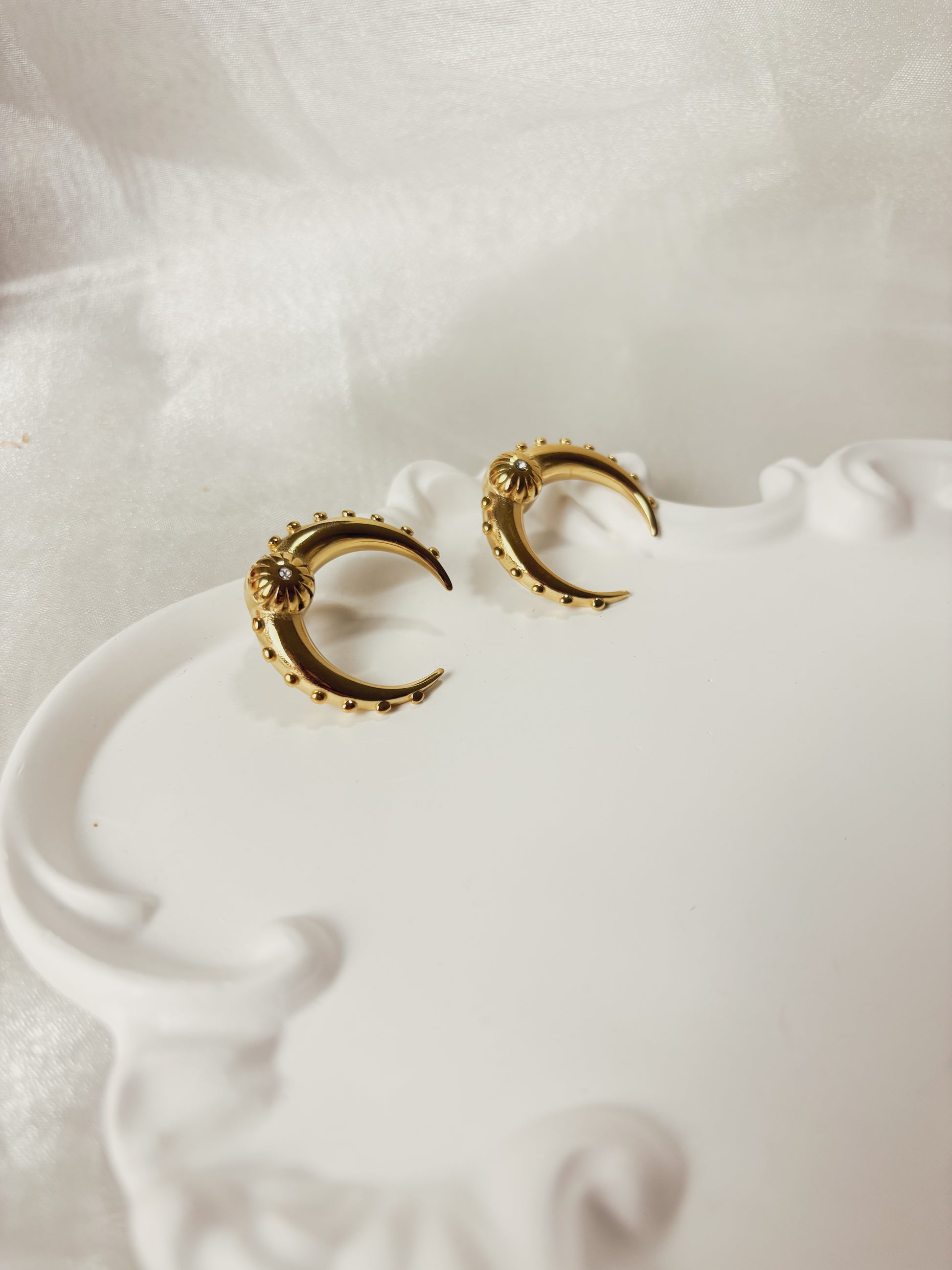 Brinco Velorae — com um design curvado e detalhes marcantes, o modelo traz um toque de sofisticação moderna que combina com produções elegantes ou casuais. Sua forma orgânica reflete leveza e movimento, tornando-o um acessório versátil e atemporal.
