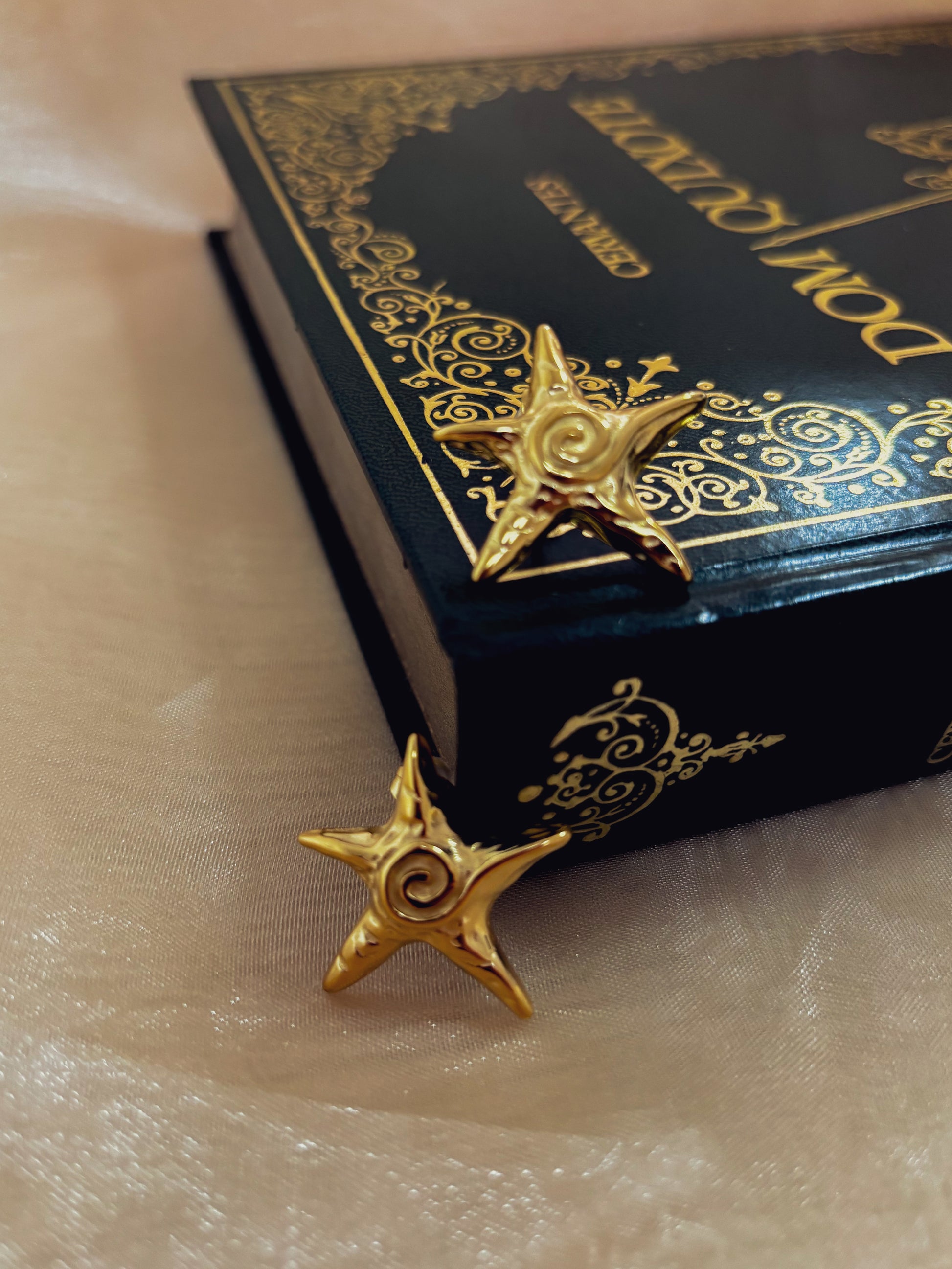 Brinco Veyrion — inspirado nas formas das estrelas, esse brinco traz um toque de brilho moderno e delicado. Seu design marcante e cheio de personalidade reflete luz com sutileza, criando um visual sofisticado e contemporâneo, perfeito para quem gosta de peças únicas e cheias de estilo.