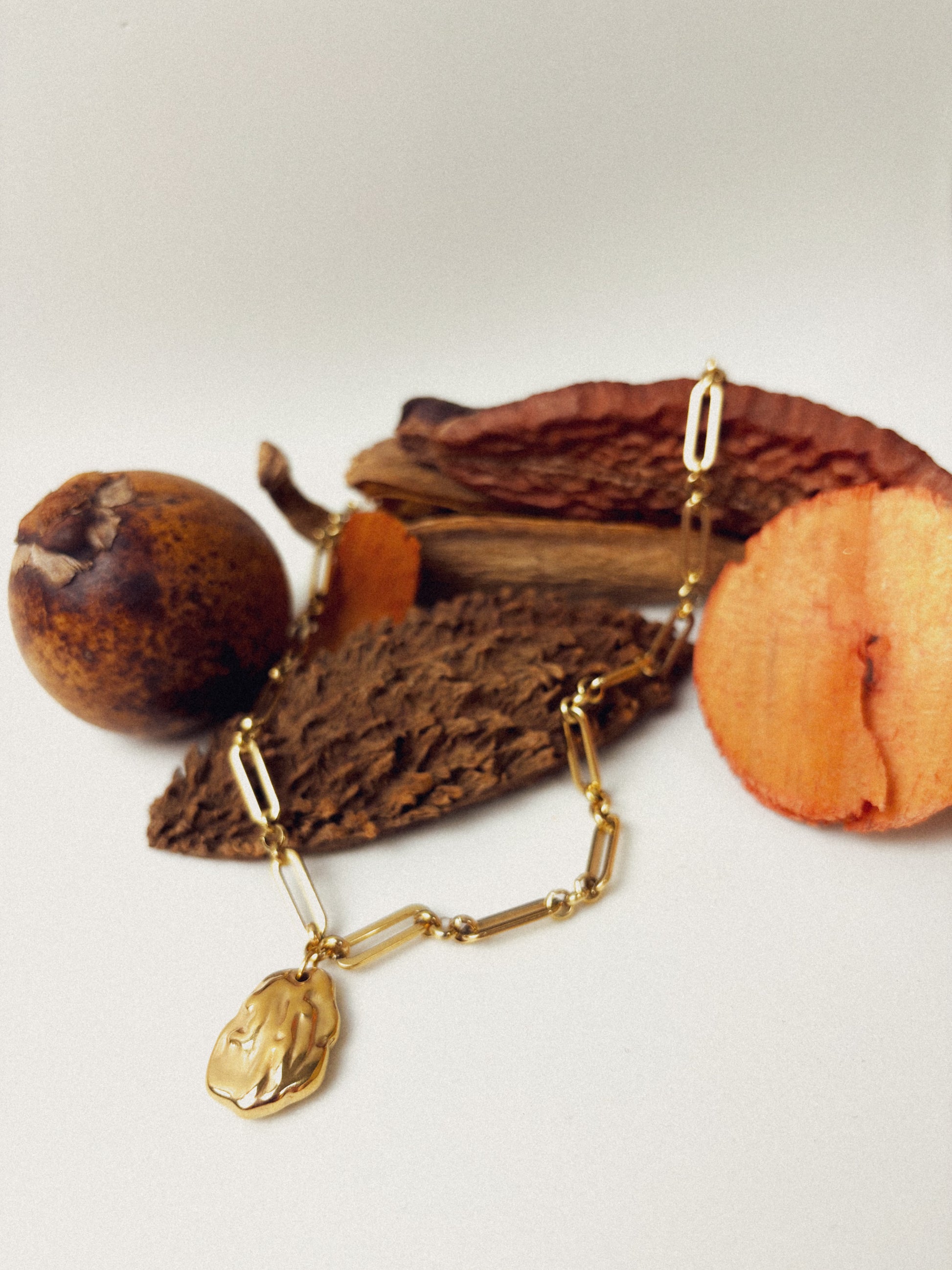 O Colar Dorenza combina a delicadeza da corrente alongada com o charme do pingente orgânico em banho de ouro 18K. Seu design moderno e versátil valoriza o colo com sutileza e sofisticação, sendo ideal para compor desde produções casuais até looks mais elegantes.