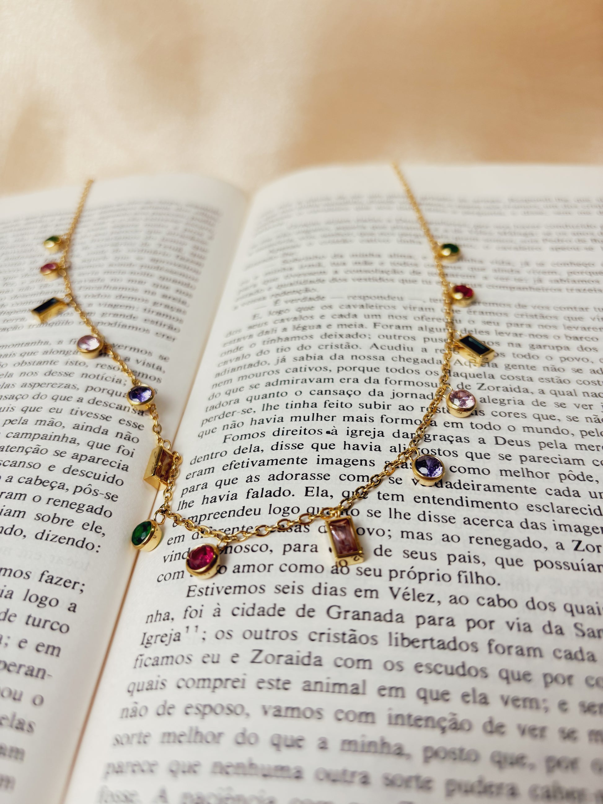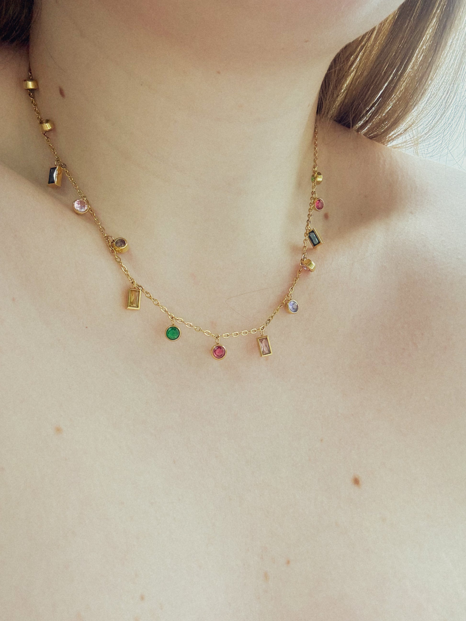 Com pedras coloridas cuidadosamente distribuídas, o Colar Fiorenza traz um toque vibrante e sofisticado para qualquer produção. Seu design delicado combina o brilho do ouro 18K com o charme das pedras em tons variados, criando uma peça leve, moderna e cheia de personalidade.