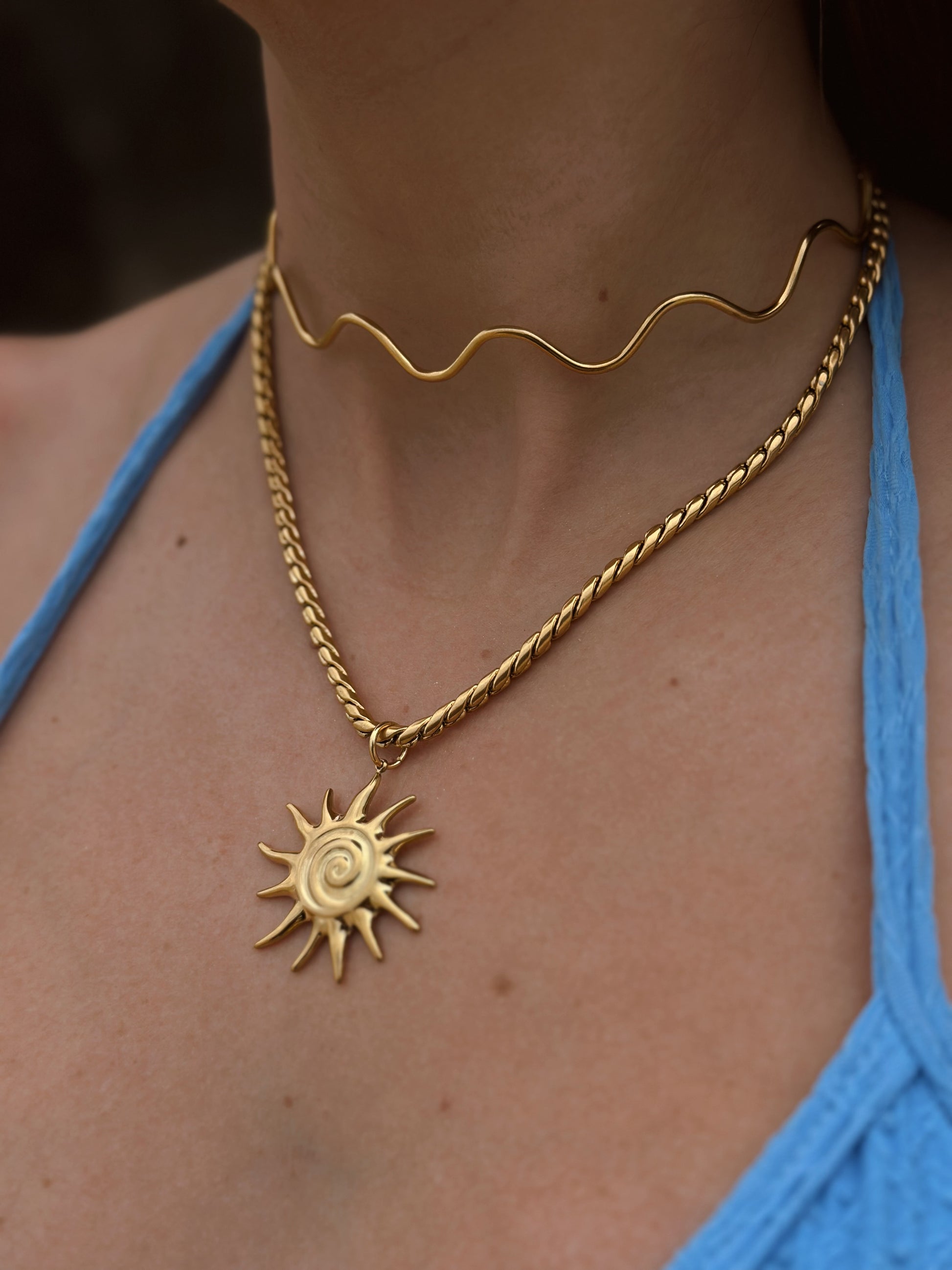 O Colar Solyra traz o brilho do sol em um design marcante e simbólico. Seu pingente em formato solar reflete luz e energia, tornando-se uma joia perfeita para quem busca transmitir força e vitalidade em cada detalhe. Uma peça que ilumina qualquer composição, do casual ao elegante.