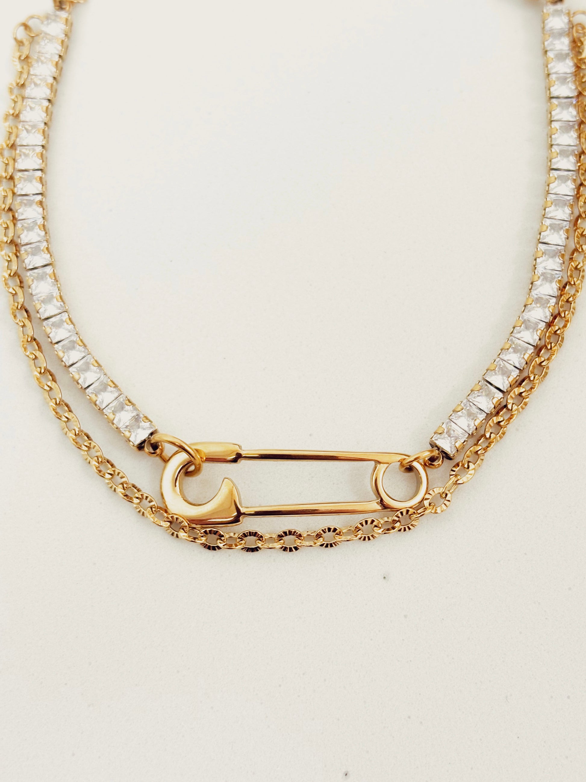 A Pulseira Alvéria traz um design elegante e delicado, com elos finos e fecho estilizado que adiciona um toque moderno à peça. Seu banho em ouro 18K realça o brilho e a sofisticação, tornando-a perfeita para compor desde produções casuais até looks mais refinados.