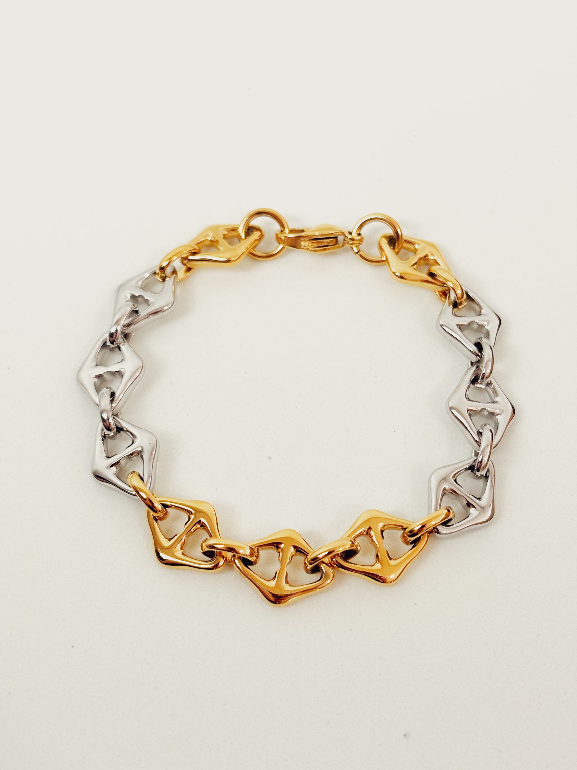 A Pulseira Astralis combina elos geométricos em tons de dourado e prateado, criando um contraste moderno e sofisticado. Seu design contemporâneo reflete estilo e personalidade, perfeita para quem busca uma peça versátil e marcante que se adapta a diferentes looks. Cada detalhe foi pensado para transmitir elegância e exclusividade.