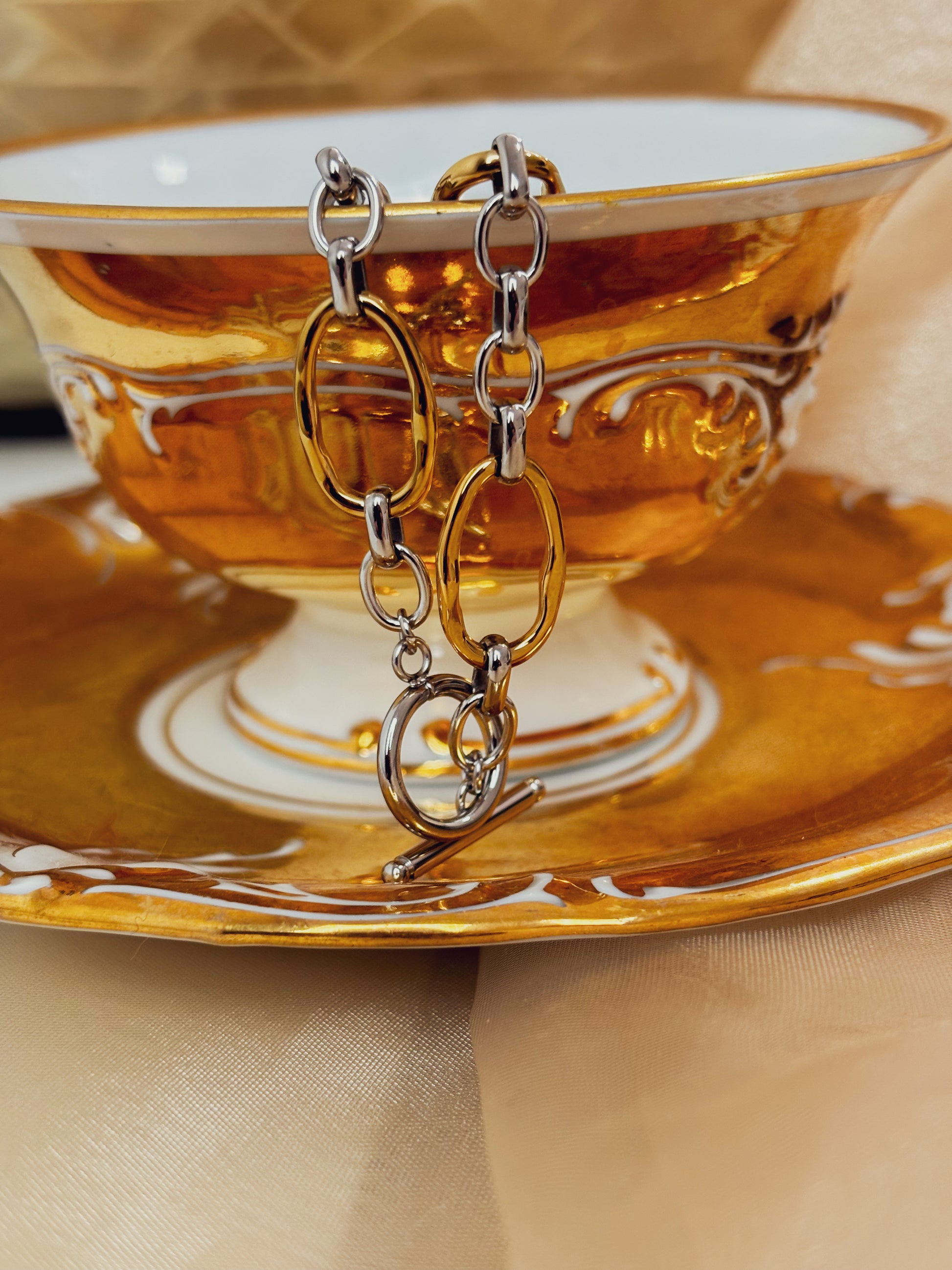 A Pulseira Orvantis é um símbolo de sofisticação contemporânea. Com elos ovais em dois tons — dourado e prateado —, combina leveza e imponência em um design que traduz elegância em cada detalhe. Perfeita para complementar looks modernos e refinados, ela é o toque final ideal para quem valoriza estilo e exclusividade.
